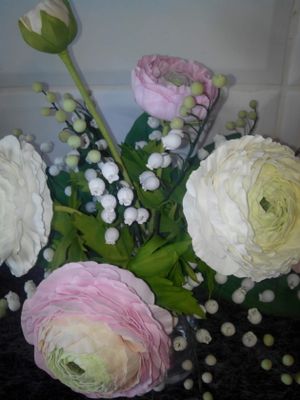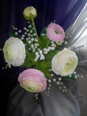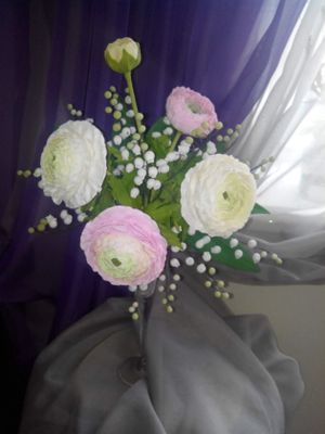 Ранункулюс и ландыши из фоамирана. Высота 30см, в ширину25см.
