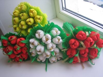 Букетики из конфет