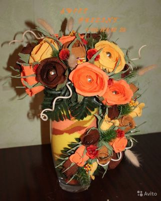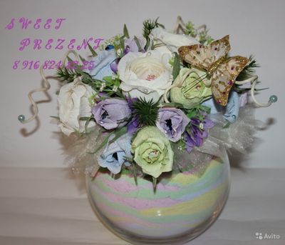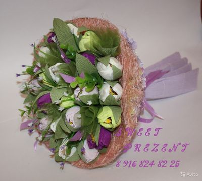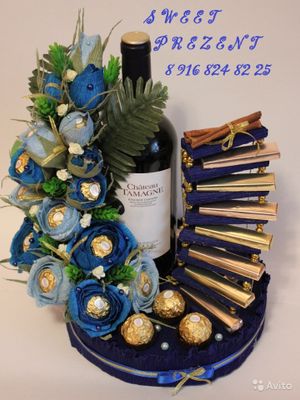 Подарочные корзины, композиции, букеты из конфет авторской работы в наличии и на заказ. Каждый букет и композиция индивидуальны и создаются с душой, любовью и доброй энергетикой) Предлагаем Вашему вниманию оригинальные и эксклюзивные, цветочные композиции, а так же интересные идеи для Вашего дома, сделанные своими руками, которые помимо всего прочего могут стать отличным подарком для Ваших близких с учетом Ваших индивидуальных пожеланий. Конфетный букет – это не банальный подарок!!! Почему? Конфетный букет - это ручная работа Конфетный букет - индивидуальный и эксклюзивный подарок. Композицию из конфет можно сделать исходя из профессии или хобби одариваемого Конфетным букетом можно не только любоваться, но и полакомится сладеньким Можно не волноваться что подарок, будет однотипным с другими подарками Это подарок, который хранит в себе тепло человеческих рук и обязательно поможет выразить Вам свои чувства! В цветочных композициях используются конфеты известных производителей и флористические материалы высокого качества. Целостность конфет и упаковки не нарушается. Стоимость от 650 р. Зависит от размера и состава композиции. Самовывоз, или поднесу к м. Марьино Всегда на связи WhattsApp, Viber или телефон. Автор рассчитывает на Ваше понимание того, что каждый новый букет не может быть точной копией выбранного Вами. Создание букета это творческий процесс, в результате которого рождается новый образ. Конечно же, новый букет из конфет будет очень близок к тому, что понравился Вам, и при этом он всё же будет лучше своего предшественника. Подарите автору право на творчество, и Вы будете вознаграждены изумительным по красоте конфетным букетом.