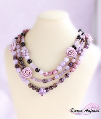 Кулон-бусы-колье ручной работы из натуральных камней