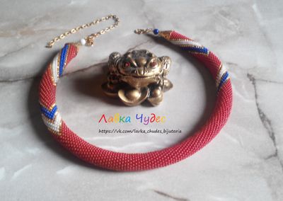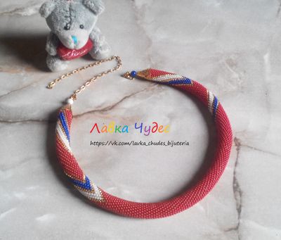 Материалы: бисер чешский №10 металлическая фурнитура золотистого цвета Длина без цепочки - 43 см, с цепочкой - 61 см