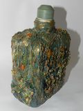 Стеклянная бутыль оформлена в технике терра и декупаж,украшена натуральным янтарем