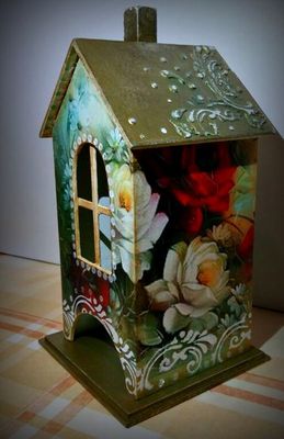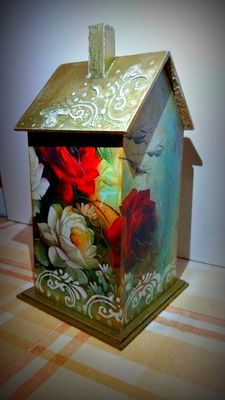 Чайный домик выполнен в технике художественный декупаж. Домик искусственно состарен (небольшие потертости, зашкуривание). Крыша домика - с объемным орнаментом. На фото его не очень хорошо видно (никак не получилось хорошо сфотографировать), но реально рисунок выпуклый и очень красиво смотрится. Основание домика - акриловая краска + потертости. Вся поверхность домика покрыта матовым акриловым лаком в несколько слоев. Очень приятно на ощупь. Крыша у домика снимается. Чайные пакетики загружаются через верх и свободно вынимаются через нижнюю арочную дверку. Очень красивая, уютная вещичка для украшения кухонного интерьера - для любителей подобного стиля. Чайный домик может стать прекрасным приятным подарком, способным выразить самые теплые чувства! Чай пьют все - домик можно подарить, как женщинам, так и мужчинам!