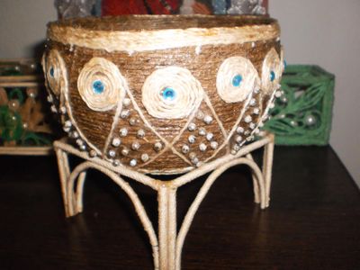 Джутовая филигрвнь. Материал: шпагат, бусенки, стразы