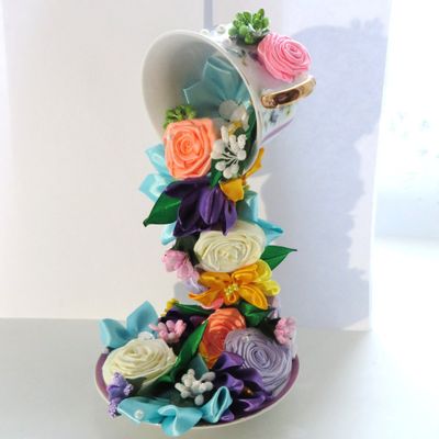 Парящая чаша с цветами. Выполнение в технике канзаши. Возможно выполнение в любом цвете.