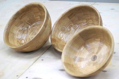 Чаша под фрукты Изготовлена из массива дуба в сегментном стиле Покрыта натуральными маслами. Размеры: Высота 10см диаметр 25см Цена за 1 штуку.