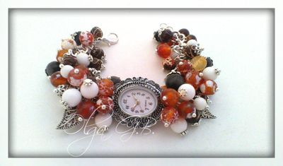 Механизм кварцевый, агат, агат черепаховый, кошачий глаз, акрил. Фурнитура под серебро.