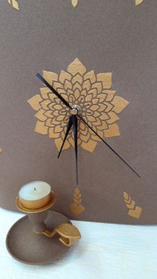 Часы настенные, окрашенный металл. Размер корпуса: высота 34см, ширина 31см, глубина 2,5см. Надёжный подвес. Механизм плавного хода Young Town, производства Гонконг. Компания имеет сертификат качества от компании SGS (Швейцария). В наличии продажный документ на механизм, батарейка в комплекте. В единственном экземпляре. В комплект к часам продаётся подсвечник в этой же цветовой гамме. Цена комплекта 1200р. По Москве бесплатная доставка к любой станции метро.