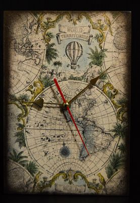 Настенные часы "Время путешествий". Размер: 21х30см Часовой механизм рабочий. Работа полностью готова и ждет своего счастливого обладателя!