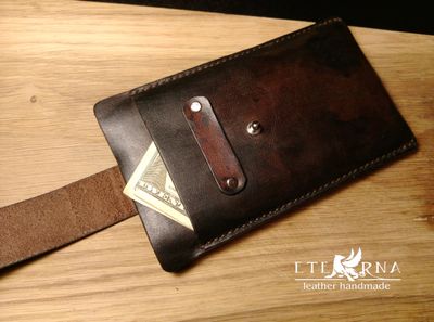 Чехол для телефона с дополнительным карманом с фиксирующим ремешком, закрывающимся на кобурную застежку.