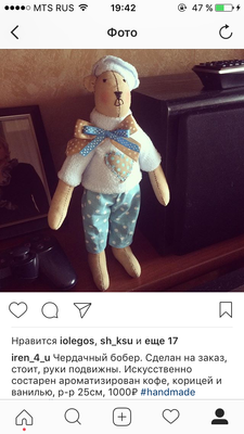 Чердачный бобер. Сделан на заказ, стоит, руки подвижны. Искусственно состарен ароматизирован кофе, корицей и ванилью, р-р 25см,