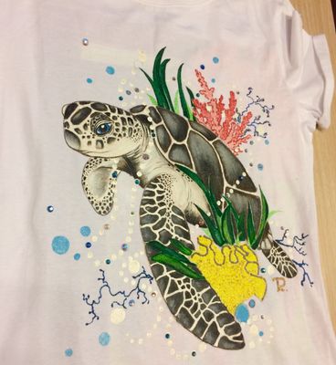 женская футболка размер-M, рисунок выполнен акриловыми красками , украшен стразами