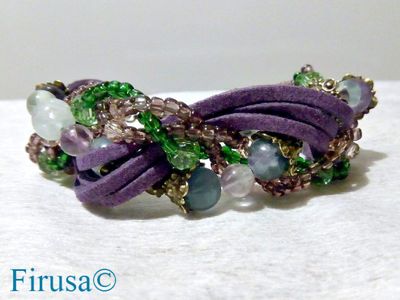 Браслет из флюорита, замши и стеклянного бисера с добавлением хрустальных бусин. Уникальная авторская работа, повтор невозможен.