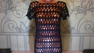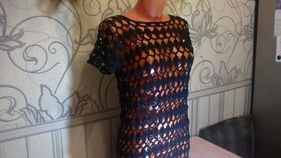 Платье выполнено из хлопка, размер 48. Длина до колена.