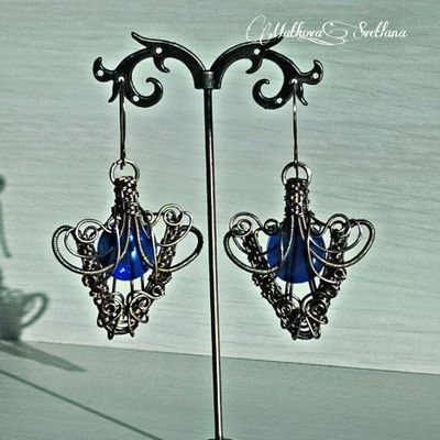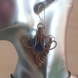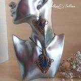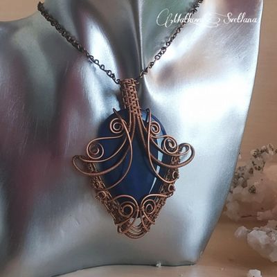 Комплект украшений выполнен из медной проволоки в стиле Wire wrapping с использованием кабошона агата, и стеклянных кабошонов. Состоит комплект из кулона на цепочке и серёжек. Украшение ручной работы в единственном экземпляре без возможности повтора. Уникальное и эффектное украшение украсит любой образ. Может стать прекрасным подарком.