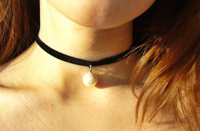 Подчеркните шею бархатным чокером с жемчугом и придайте своему образу особую элегантность. Чокеры из эластичной бархатной ленты с искусственно выращенным жемчугом. Белый сферический жемчуг и серый каплевидный. Длина ленты: 30 см+8см удлиняющей цепочки. Растягивается без напряжения до 33-35 см