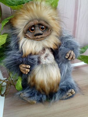 Чудик полностью ручная работа в единственном экземпляре. Мордочка, ладошки и ступни- запекаемый пластик, шёрстка- искусственный мех. Рост 30 см.