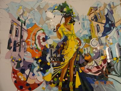 Картина создана из кожи в технике мозаики. Материалы: натуральная кожа, акриловые краски, акриловый контур. Багет. Размер 48х41