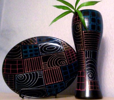 размер тарелочки 21 см, цена 1000 размер вазы 9*22,5, цена 700