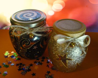 Золотистая баночка декорирована блестками и милым бубенчиком, поверхность надежно закреплена несколькими слоями лака. Послужит праздничным декором, теплым подарком, хранилищем приятных сердцу вещей или сказочным подсвечником. 350 мл