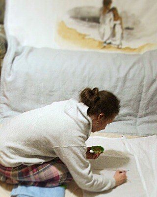 Декоративное покрывало и наволочки в комплекте.Ручная роспись.Сделано из льна,наполнитель-синтепон.Сделано на заказ,набор уникален.