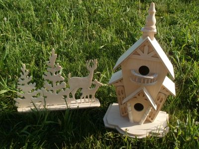 Декоративный скворечник . Материал - березовая фанера, массив дерева. Возможно изготовление по вашему эскизу.