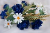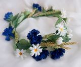 Венок из ромашек и васильков. Натуральный шелк, ручная работа, все окрашено и собрано в ручную