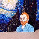 По автопортрету Винсента Ван Гога сентябрь (1889 год). Последний год жизни Ван Гог провел в одиночестве. «Я намерен оставаться в психиатрической лечебнице, пока мой разум не придет в нормальное состояние. Я никогда не осмелюсь попросить других художников приехать сюда, ведь они могут сойти с ума, как я». Материалы: дерево, акрил, лак, булавка.