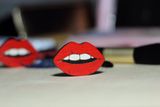 Деревянная брошка "губы"