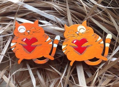 Брошь дарящая любовь и тепло своему владельцу:) Родители не разрешают завести кота? Мы разрешаем!!! Ещё и по доступной цене! ;) Материалы: дерево, акрил, лак, булавка.