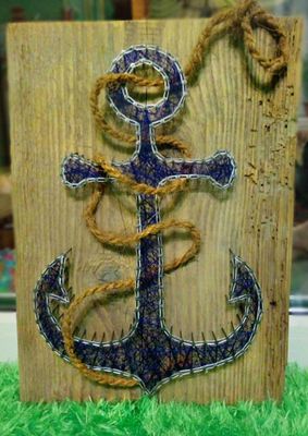 Дерево, нитки, гвозди.