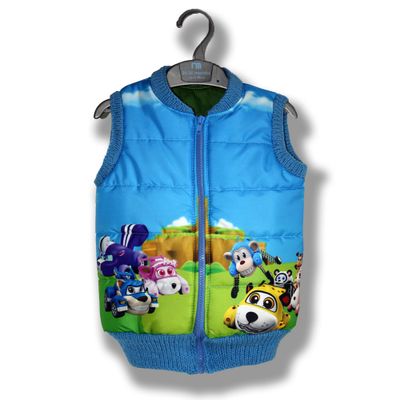 Модная, утепленная безрукавка для мальчика - изделие совершенно необходимое! Неустойчивая весенняя погода обязывает быть готовым и к ветру, и к холоду, и к дождю. Но настроение призывает быть новым, современным, ярким! Стильная безрукавка с фотопринтом - именно то, что нужно! Она создаст уют и комфорт, а также сделает образ ребенка ярким и динамичным. Любимые герои мультсериала Вруми (Спиди, Банки, Джеральдина, Фара, Спанки, Люси, Пити, Дракон Док) всегда будут вместе с малышом. Безрукавка выполнена из плащевки с фотопринтом нанесенным методом сублимации, что делает ее необчной и интересной. Воротник, проймы рукавов и низ безрукавки дополняют вязаные манжеты в цвет молнии. Подклад - 100% хлопок. Утеплитель - синтепон. Дополнительное описание Размер 104 см Сезон Демисезон Пол Мальчики Утеплитель Синтепон Фактура материала плащевка, ручная вязка Комплектация: безрукавка Ручная работа! Точное повторение невозможно! Под заказ возможно изготовление безрукавки с героями других мультфильмов по индивидуальному макету. Фиксики, Молния Макуин, Смешарики, Барбоскины, Суперкрылья, Мимимишки, Щенячий патруль и многие другие. Можно добавить капюшон. В комплект к безрукавке можно сшить толстовку с тем же рисунком.