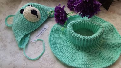 Детский комплект из шапочки и манишки. Выполнена из пряжи "MILK COTTON" Мягкая и нежная на ощупь пряжа, делает этот комплект просто незаменимой вещью для детей. Он подходит как для повседневной носки, так и для тематических фотосессий