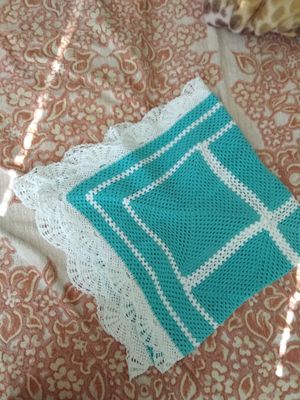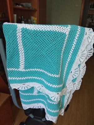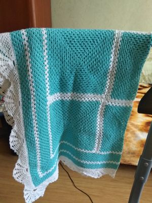 Детский плед ручной работы крючком . Бирюзового цвета . Выполнен из квадратов размер 90/90. Пряжа хлопок.