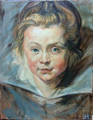 Копия. Портрет маленькой светловолосой девочки. Многослойная техника "старых мастеров" обретает динамику за счёт множества графичных штрихов. Запечатлено сиюминутное состояние модели.
