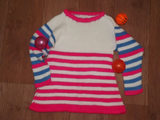 Платье Морячка связано спицами из 100% акриловой пряжи. Очень теплое при носке. Не колется, что позволяет надеть его на аллергика