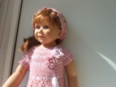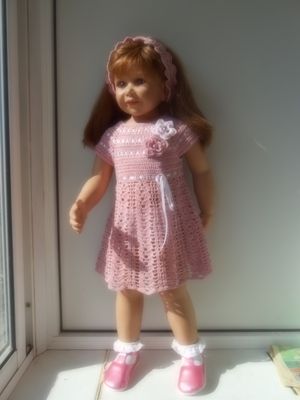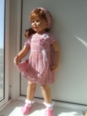 Платье и повязка на голову для девочки 2-4 лет.связано крючком из тонкого мерсеризованного хлопка,пряжа "СОСО".Размер регулируется атласной лентой под кокеткой.Украшено атласными лентами и связанными крючком цветами