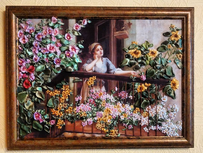 30*40 , атласные ленты , цветные и белые окрашенные вручную, без багета стоимость изделия дешевле.