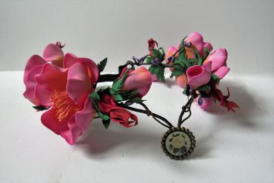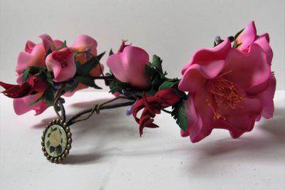 Диадема с цветами и ягодами шиповника. Стиль - фентези. Для создания оригинального образа. Каждый цветок выполнен вручную из фоамирана. Элемент в центре не поддаётся повтору, есть варианты замены. Есть в наличии, возможно выполнение на заказ с изменением цвета. Стоимость доставки включена в стоимость товара. Осуществляется в любой город РФ. Оплата по договорённости (перевод на банковскую карту или наложенный платёж)