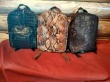 Материал:натуральная кожа(принт-анаконда,крокодил,страус). Размеры: 30x22x11(ВxШxГ). Каждая вещь индивидуальна.Отличаются расположением карманов на передней и задней частях изделия, карманы на молниях. Подкладка, внутренняя часть-накладной карман.
