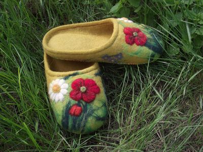 Домашняя обувь из 100% шерсти.Подошва из микропористой резины,прошита и проклеена.Мягкая пяточка.Размер 36-37.Под заказ можно другой цвет и размер.Срок изготовления -две недели.