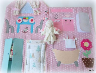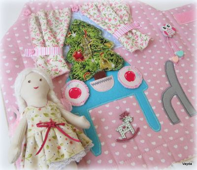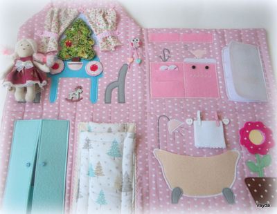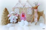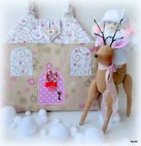 Игровой домик-сумочка выполнен из качественных материалов импортного производства (Германии, Кореи). В сложенном виде р-р 23*23 см, в разложенном 46*46 см. Олешки на фасаде домика, нежная расцветка, белые завитки на крыше - всё это нам напоминает любимейшую сказку детства "Снежная королева". У куколки белая шубка и шапочка из флиса, двустороннее платьице, банный халатик - есть во что переодеться! В домике можно поставить елочку, а после новогодних праздников ее можно убрать до следующего года. Ткани подобраны таким образом, что в праздник домик будет выглядеть торжественным, а в обычные дни по девчачьи нежным. В холодильнике припасены фрукты и овощи - куколка готова встретить гостей. Вы можете сами придумать и сделать новые аксессуары из фетра, ткани, картона. Это повод и для совместного досуга, и возможность освоить новое. Но главное - это сам процесс творческой игры и ее подготовки.