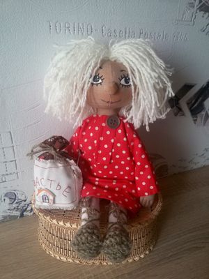 Домовенок выполнен из натуральных тканей, хлопок, рост 32-35 см, стоит на подставке, личико расписано акриловыми красками, волосы из пряжи, можно посадить, одежда и лапти не съемные, в руке мешочек СЧАСТЬЯ. Кузьмой можно играть, или использовать как интерьерную куклу. Возможен повтор. Доставка Почтой России от 250 -350 руб, согласно тарифам почты. Дарите любимым подарки с любовью!!!