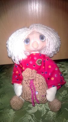 Оберег для дома. Рост 20 см. Может быть выполнен с мешками "Счастье", "Любовь", "Удача", с сундучком сказок. Сидит с опорой.