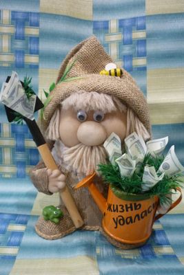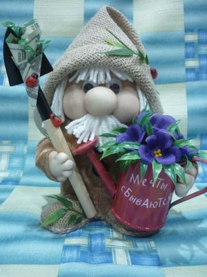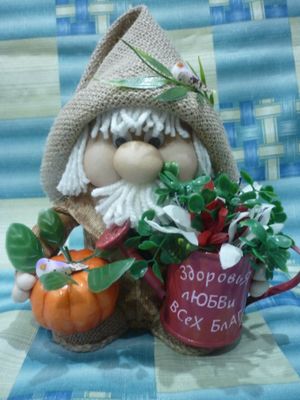 Домовой – оберег, который считается идеальным хозяином дома. Это мифическое существо представляет собой вечного хлопотуна, порой ворчливого, но доброго и заботливого. В руках Домовята могут держать символичные вещи, которые будут оберегать домочадцев от различных напастей и привлекать положительные события. Спешите приобрести домовенка – оберег в свой дом, а так же как замечательный подарок на все случаи. Высота изделия 18-22 см Рекомендации по уходу: Аккуратно смахивать пыль, холить и лелеять