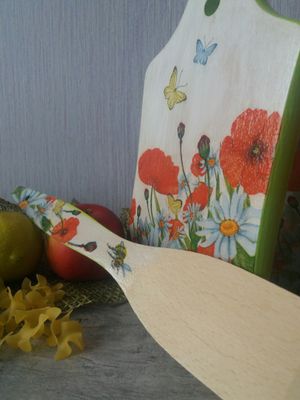 Подарочный кухонный наборчик : доска + лопатка в подарок в технике декупаж. Размеры 22/13 см - доска 28- лопатка Обратная сторона доски - дерево