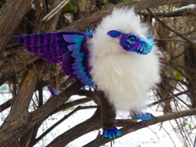 Прекрасный дракон станет хранителем ваших снов. Подвижный каркас позволит придать ему любую позу ,а мягкий мех удовлетворит ваши тактильные ощущения в полной мере! Натуральные когти ястреба тетеревятника остры,поэтому игрушка не подойдет маленьким детям. Но станет изюминкой у коллекционера не стандартных игрушек)