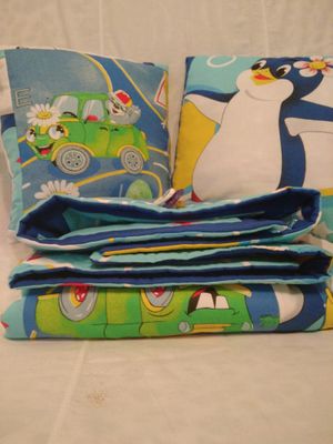 Одеяло 108/108см Материал бязь, наполнитель синтепон. Подушки 38/38см Материал бязь, наполнитель холлофайбер