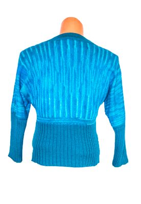 Изготовление: Сделаем на заказ Материалы полушерстяная пряжа Описание Модель выполнена на основе машинного трикотажа с использованием отделочной нити (платинг). При изготовлении использована полушерстяная пряжа и смесовая пряжа с добавлением шелка. Модель имеет цельнокроеный рукав (кимоно). Бренд: Studio Vita700