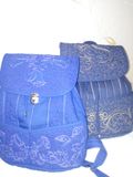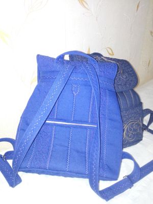 джинсовый рюкзак ручной работы, оформлен декоративной строчкой. хорошо держит форму за счет поролона-5мм.подклад-хлопок. Есть один внутренний и три наружных кармана(один на молнии)